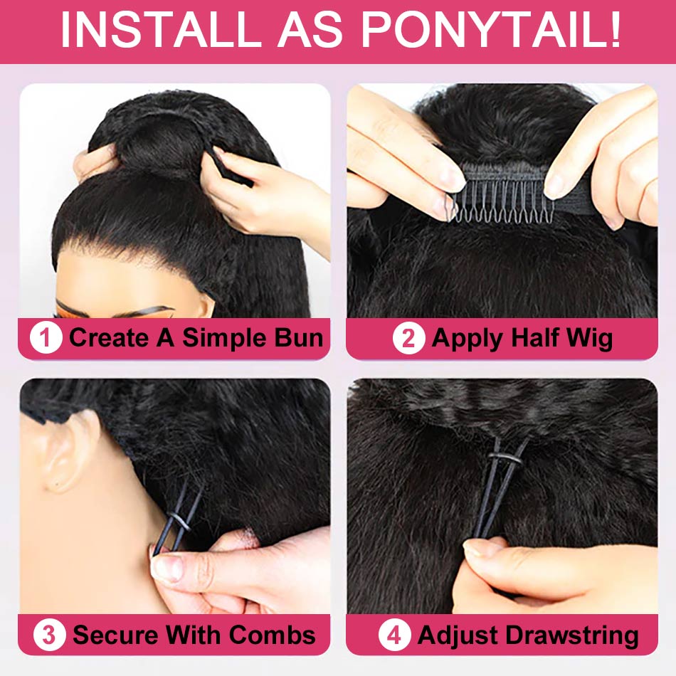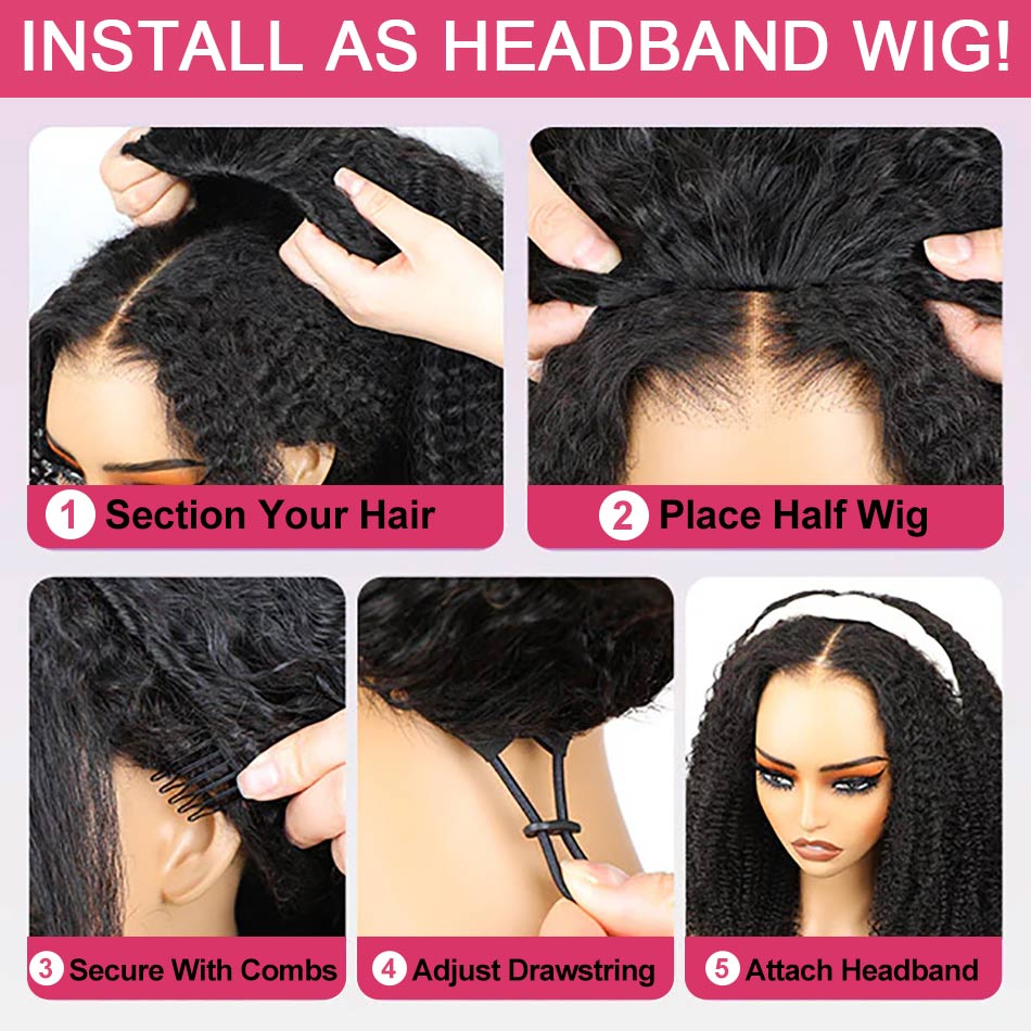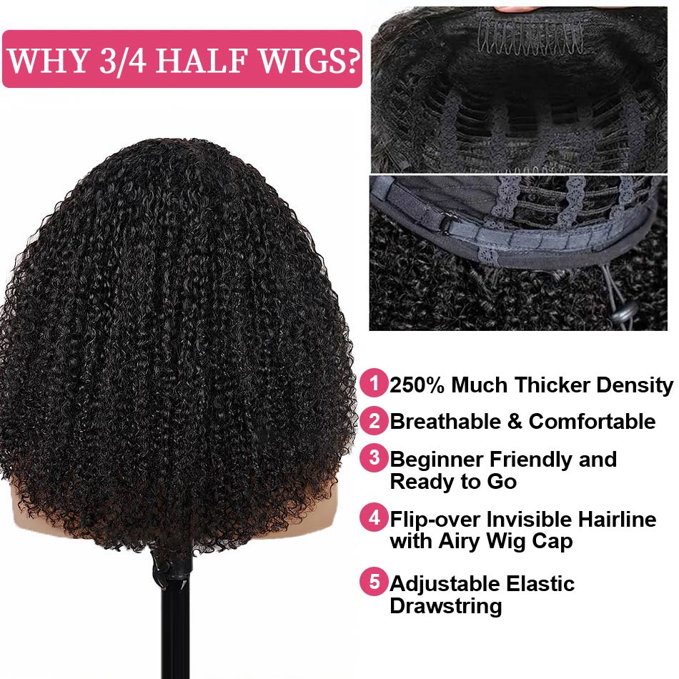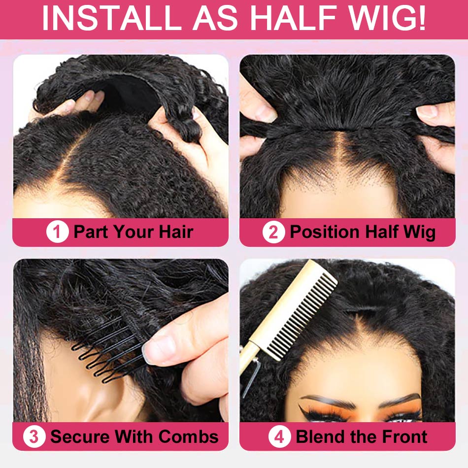 【3 IN 1 HALF WIG】GLUELESS Invisible Half Wig For Blackwomen Clip On Flipover Styles 250% Thick Density